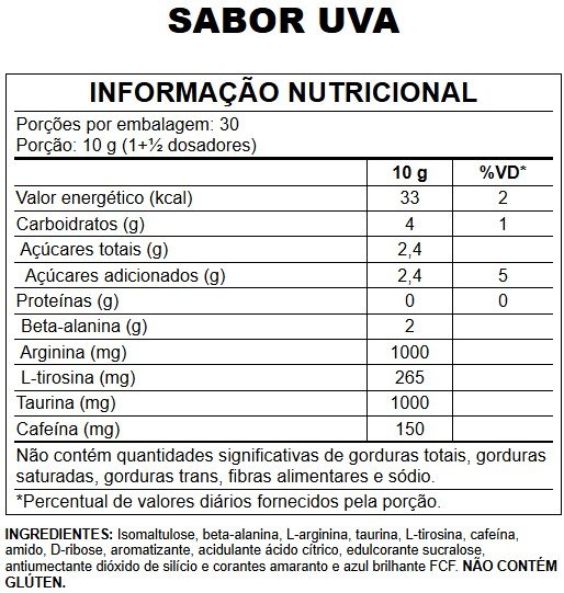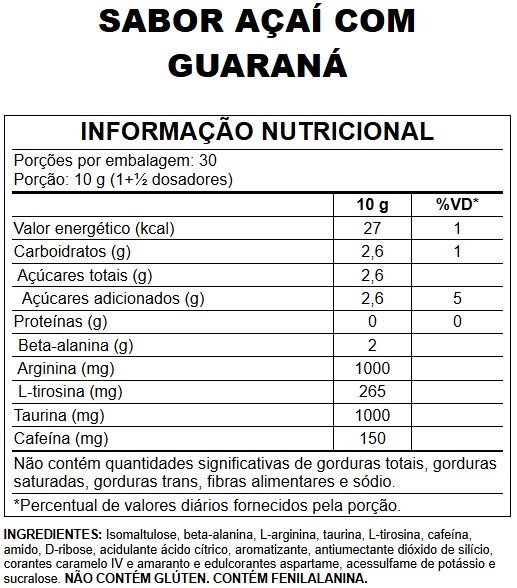 consumir 1 porção ao dia. Consumir 40 mL a cada 2 horas. O consumo de beta-alanina deve ocorrer na quantidade diária máxima de 2 g, em doses máximas de 300 mg, com intervalo de duas horas entre as doses.