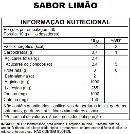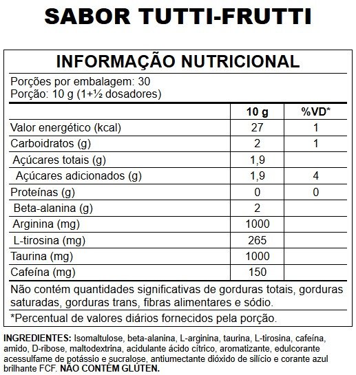 Abaixo se encontra a tabela nutricional e algumas instruções para o consumo