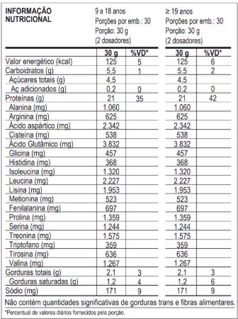 - Alta concentração proteica;20 a 21g de proteína por porção